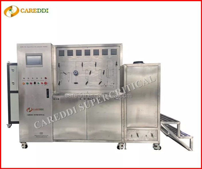 The Supercritical CO₂ Extraction Machine – 30L (15L × 2) Model is a compact and efficient extraction system designed for precise and solvent-free extraction of essential oils, plant extracts, and active ingredients. It features two 15-liter extraction vessels, each with a maximum working pressure of 35MPa and a temperature capacity of up to 80°C. The system includes two separation vessels, a high-pressure CO₂ pump, co-solvent pump, water circulation system, chiller, heat exchangers, and a CO₂ recovery unit. Constructed from high-quality stainless steel 304, the machine ensures durability, corrosion resistance, and hygienic processing. The integrated touchscreen control system allows for automated operation, real-time monitoring, and data logging. Ideal for small to medium-scale production in the pharmaceutical, food, cosmetic, and botanical industries.