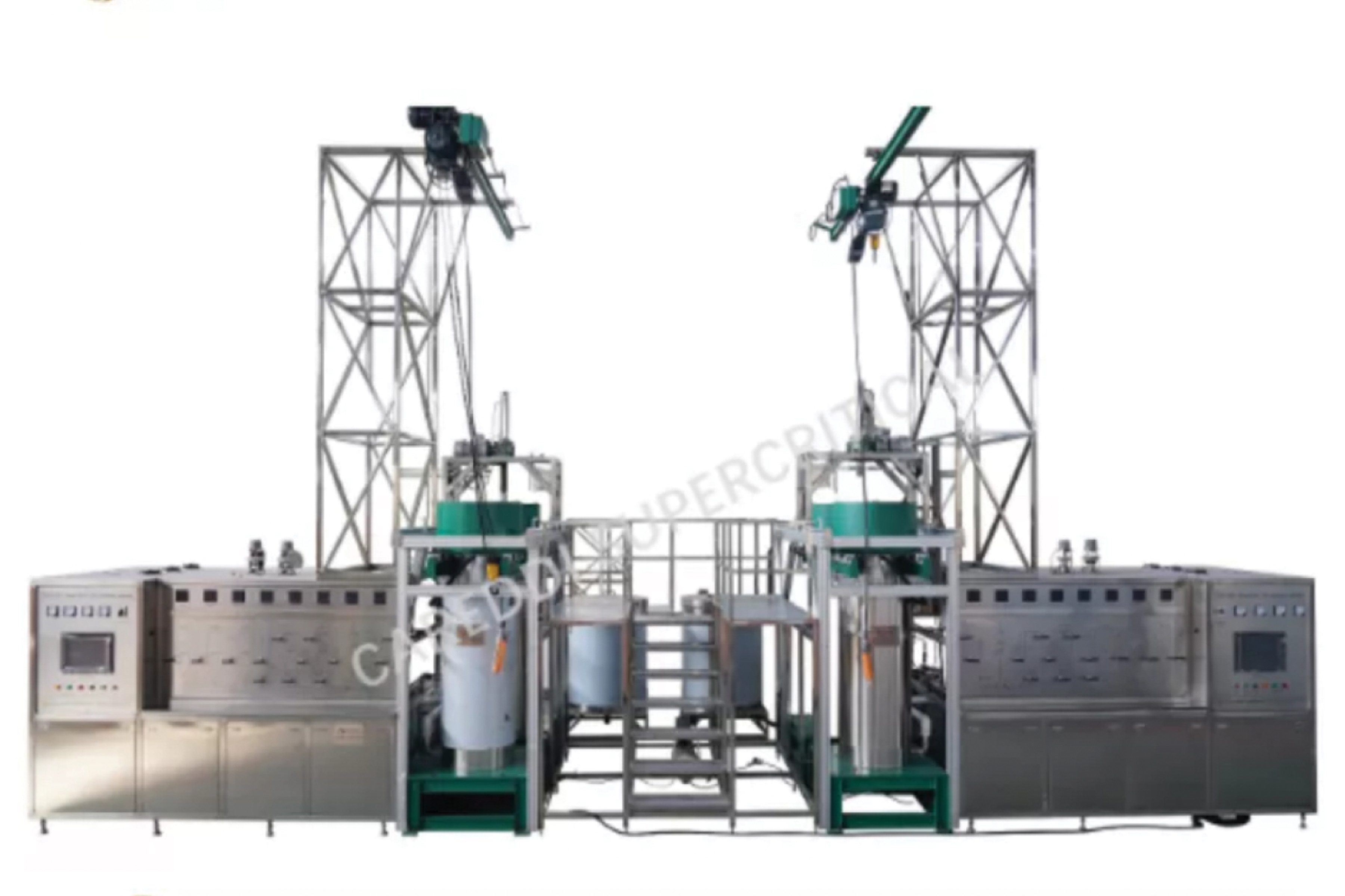 The Supercritical CO₂ Extraction Machine – 300L (150L × 2) Model is a large-scale, industrial-grade system designed for high-throughput extraction of essential oils, plant actives, and other bioactive compounds. It features two extraction vessels, each with a 150-liter capacity, engineered to operate at pressures up to 45MPa and temperatures up to 80°C. The system is equipped with dual separation vessels, a high-flow CO₂ plunger pump, co-solvent pump, water circulation units, chillers, heat exchangers, and a CO₂ recovery system. All components are made from corrosion-resistant stainless steel 304 for long-term durability and compliance with hygiene standards. A fully integrated touchscreen control system allows precise operation, temperature and pressure regulation, and real-time data acquisition. This model is ideal for commercial-scale production in industries such as pharmaceuticals, food processing, cosmetics, nutraceuticals, and natural product extraction.