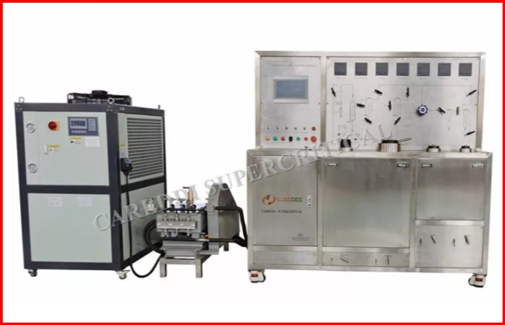 The 6L (5L + 1L) Supercritical CO₂ Extraction Machine is a compact, lab-scale system designed for efficient, solvent-free extraction of essential oils, cannabinoids, and other bioactive compounds from botanical materials. This configuration includes two extraction vessels—one 5-liter and one 1-liter—allowing for flexible processing of different batch sizes. The system operates at a maximum working pressure of 50 MPa and a maximum working temperature of 85°C, ensuring CO₂ remains in its supercritical state for optimal extraction efficiency. Key components include a high-pressure CO₂ pump with a flow rate of 50L/h, a co-solvent pump for extracting more polar substances, and a CO₂ recovery system to recycle CO₂ below 6 MPa. Additionally, the system features a chiller to liquefy gaseous CO₂ and cool the pump head, as well as a heat exchange system and water pumps for temperature control. Constructed from stainless steel 304, the equipment ensures durability and compliance with industry standards. This model is suitable for applications in industries such as hemp, pharmaceuticals, cosmetics, and herbal extraction, offering a balance between capacity and operational flexibility